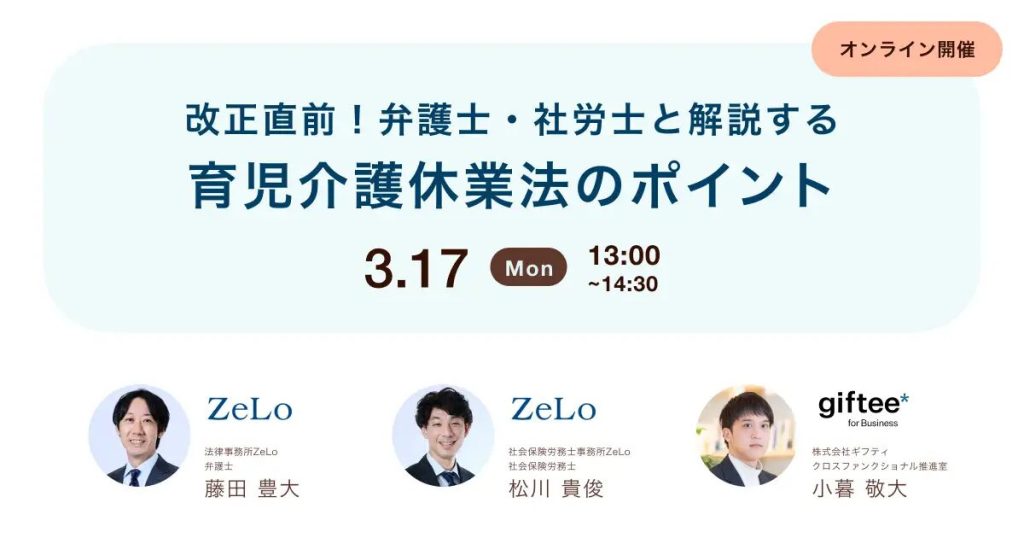 改正直前!弁護士・社労士と解説する育児介護休業法のポイント(株式会社ギフティ共催)