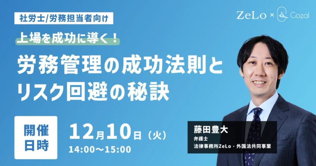 【社労士/労務担当向け】上場を成功に導く!労務管理の成功法則とリスク回避の秘訣(株式会社Gozal共催)